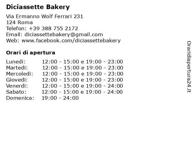 | Sabato | 12:00-15:00 e 19:00-24:00 |