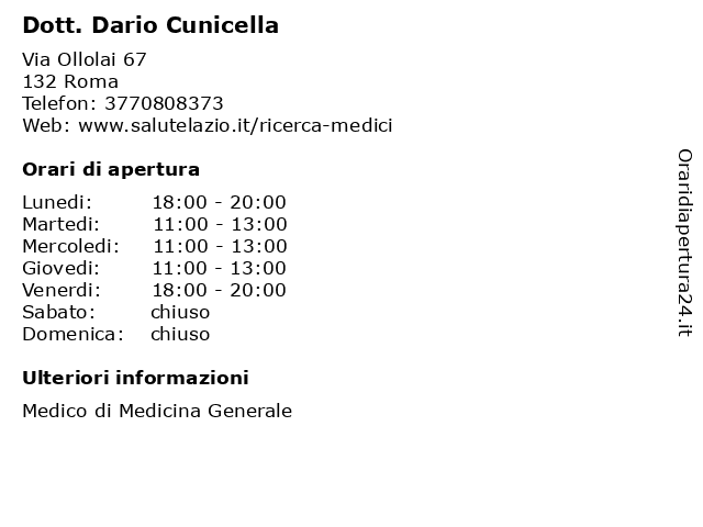 1 Dott. Renzo Cunicella (distanza: 0,23 km) Via Ollolai 6, 00132 Roma ambulatori, analisi, cunicella, cura della persona, cure, dott., medici, medicina, renzo, sanità, visite mediche 2 Dott. Renzo Cunicella (distanza: 3,25 km) Via Petralia Soprana 2, 00132 Roma ambulatori, analisi, cunicella, cura della persona, cure, dott., medici, medicina, renzo, sanità, visite mediche 3 Dott. Renzo Cunicella (distanza: 8,36 km) Viale A. Ciamarra 196, 00173 Roma (RM) ambulatori, analisi, cunicella, cura della persona, cure, dott., medici, medicina, renzo, sanità, visite mediche 4 Pneumatici Bagnoli Dario (distanza: 9,28 km) Via delle Campanule 30, 00171 Roma bagnoli, convergenza, dario, gomme, pneumatici, sostituzione 5 Art Camper di Dario Parasole (distanza: 11,38 km) Via Sandro Pertini 52, 00043 Ciampino - Rome accessori camper, art, camper, compravendita veicoli usati, dario, di, parasole 6 Dott. Bressan Dario (distanza: 12,40 km) Via del Pigneto 110D, 00176 Roma ambulatorio, bressan, dario, dott., medicina, medico, medico di famiglia, pediatra, sanità, studio medico, visite |
