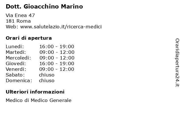 | Venerdi | 09:00-12:00 |
