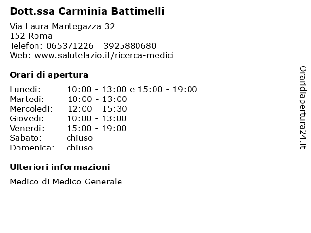 | Lunedi | 10:00-13:00 e 15:00-19:00 |