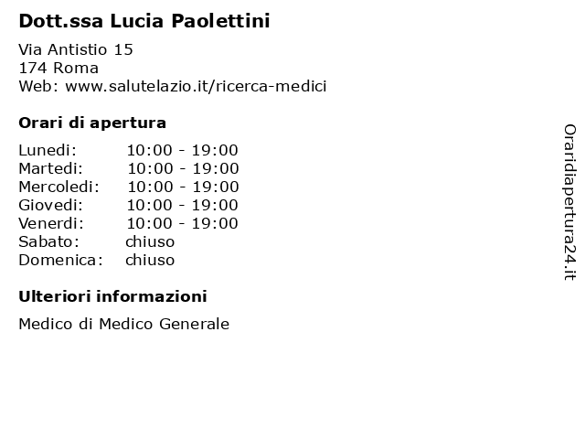 | Lunedi | 10:00-19:00 |