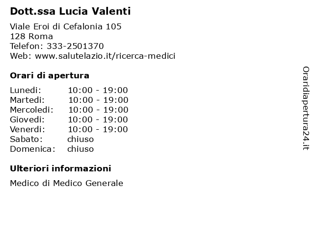 1 Dott.ssa Valenti Lucia (distanza: 0,45 km) Via Scipione Franchetti 36, 00128 Roma (RM) ambulatori, circoscrizione, dott.ssa, dottore, dr.ssa, guarigione, lucia, medico di base, medico di famiglia, pediatra, studi, valenti, visita 2 Permanent Make-Up By Erika Valenti (distanza: 3,73 km) Viale degli Astri 46, 00144 Roma (RM) belleza, by, dream, erika, hair, make, parrucchieri, permanent, salud, spa, up, valenti 3 Valenti Tiziana (distanza: 12,50 km) Via Della Pelliccia 29/30, 00153 Roma catering, ristoranti, tiziana, valenti 4 Studio Immobiliare Valenti Di Valenti Maurizio Fabio (distanza: 12,56 km) Via Andrea Ferrara 30, 00165 Roma fabio, gestione, immob, immobiliare, industriali, locaz, maurizio, studio, valenti 5 Valenti Alessandra (distanza: 13,09 km) Via Di Santa Maria Mediatrice 24/26, 00165 Roma alessandra, bar, birrerie, paninoteche, valenti 6 Studio Diagnostico Pantheon (Prof. Mario Valenti) (distanza: 13,57 km) Via Giustiniani 12, 00186 Roma (RM) (prof., ambulatorio, assistenza, cure mediche, diagnostico, mario, pantheon, prof., sanità, servizi ai cittadini, studio, valenti, valenti) |
