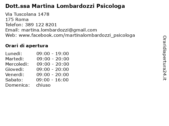 1 Dott.ssa Arianna Frisina Psicologa Psicoterapeuta (distanza: 0,15 km) Viale Quintilio Varo 112, 00173 Roma (RM) arianna, belleza, dott.ssa, dr.ssa, dream, frisina, hair, parrucchieri, psicologa, psicoterapeuta, salud, spa 2 Dottoressa Alice Carbone Psicologa (distanza: 0,24 km) Via Tuscolana 1370, 00175 Roma alice, benessere, carbone, dottoressa, psicologa, psicologo, psicoterapeuta, salute mentale 3 Dr.ssa Francesca Giovannelli Psicologa-Psicoterapeuta (distanza: 0,31 km) Viale Appio Claudio 289, 00174 Roma all'ordine, degli psicologi, del lazio con, dr.ssa, francesca, giovannelli, psicologa, psicologa dal 1995 e psicoterapeuta dal 2000, psicoterapeuta, sono iscritta 4 Dott.ssa Michela Vespa Psicologa Psicoterapeuta (distanza: 0,33 km) Via Sestio Calvino 114, 00174 Roma dott.ssa, michela, psicoanalista, psicologa, psicologia, psicoterapeuta, vespa 5 Menti & Strumenti - Maria Giusy Nigro Psicologa (distanza: 0,64 km) Via Tuscolana s.n.c., 00174 Roma adolescenti, adulti, consulenza psicologica, coppie, famiglie, giusy, maria, menti, nigro, psicodiagnosta, psicologa, psicologo, strumenti 6 Psicologa Laura Di Vito Curmini (distanza: 0,65 km) Via Curzio Rufo 10, 00174 Roma curmini, di, laura, psicoanalista, psicologa, psicologia, psicoterapeuta, vito |