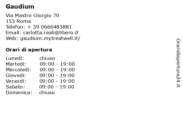 | Giovedi | 09:00-19:00 |