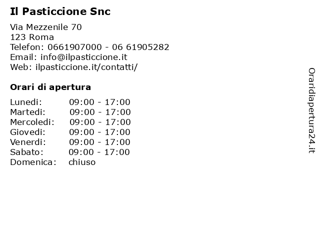 | Lunedi | 09:00-17:00 |