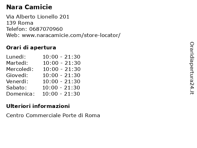 | Sabato | 10:00-21:30 |
