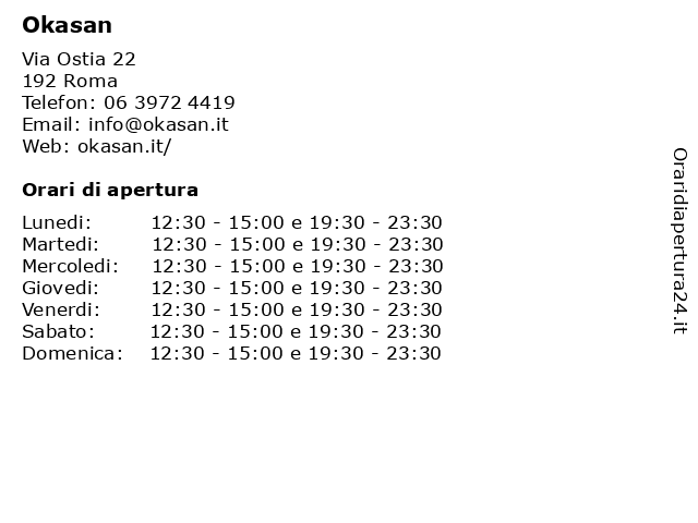 | Domenica | 12:30-15:00 e 19:30-23:30 |