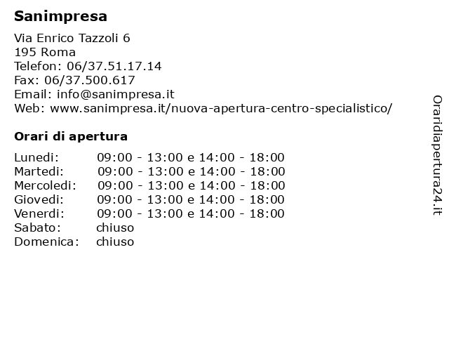 | Lunedi | 09:00-13:00 e 14:00-18:00 |