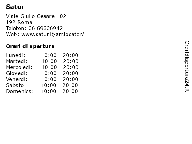 | Sabato | 10:00-20:00 |