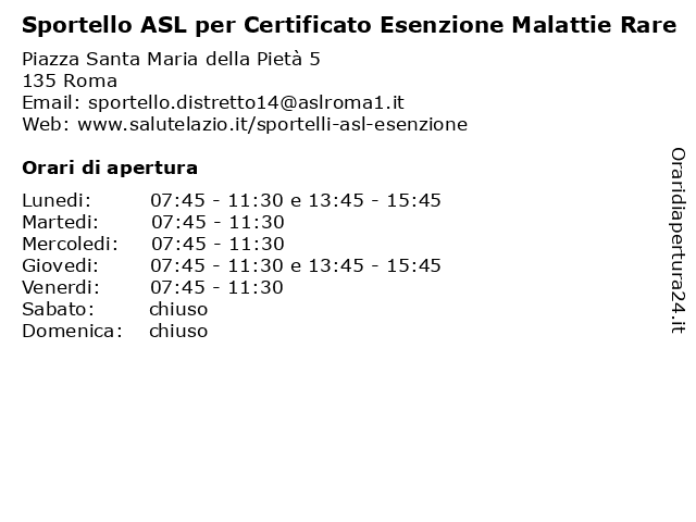| Lunedi | 07:45-11:30 e 13:45-15:45 |