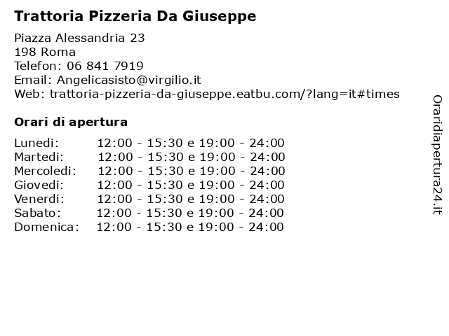 | Domenica | 12:00-15:30 e 19:00-24:00 |