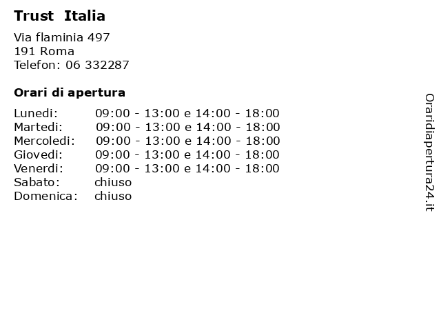 | Lunedi | 09:00-13:00 e 14:00-18:00 |