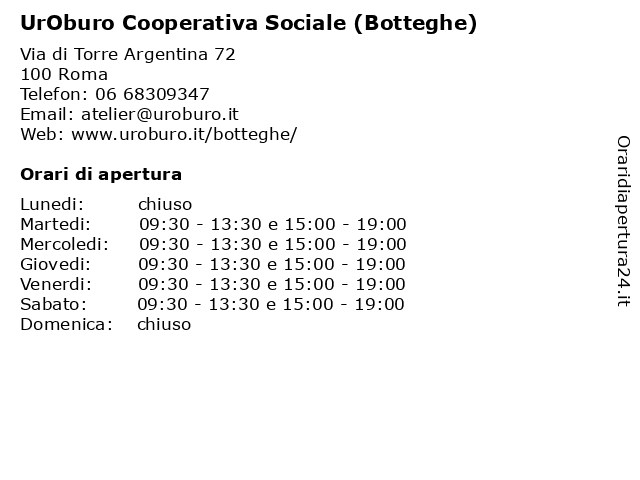Sabato | 09:30-13:30 e 15:00-19:00 |