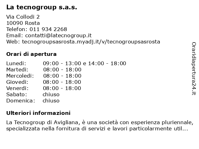 | Lunedi | 09:00-13:00 e 14:00-18:00 |