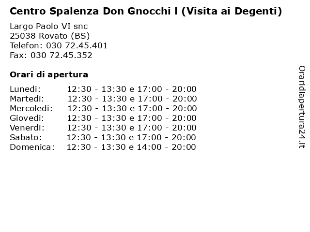 | Lunedi | 12:30-13:30 e 17:00-20:00 |