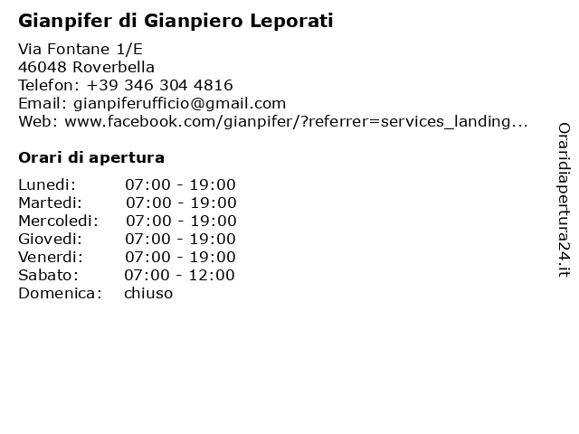 | Venerdi | 07:00-19:00 |