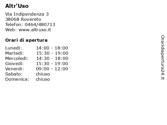 | Tag di ricerca per Altr'Uso:abbigliamento, vestiario, alimenti, usato, volontariato, ascolto, mensa, sussidi, accompagnamento ai servizi, aiuto ai bisognosi, aiuto materiale, pasti caldi, altr'uso, riutilizzo |
