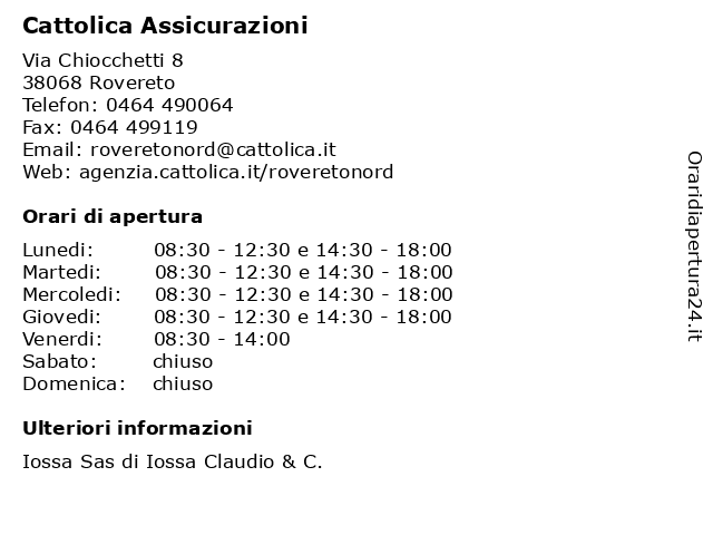 | Martedi | 08:30-12:30 e 14:30-18:00 |