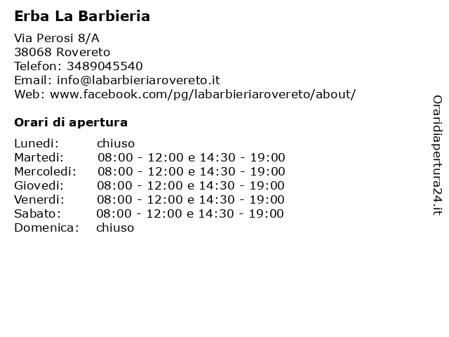 | Venerdi | 08:00-12:00 e 14:30-19:00 |