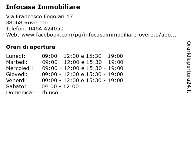 | Lunedi | 09:00-12:00 e 15:30-19:00 |