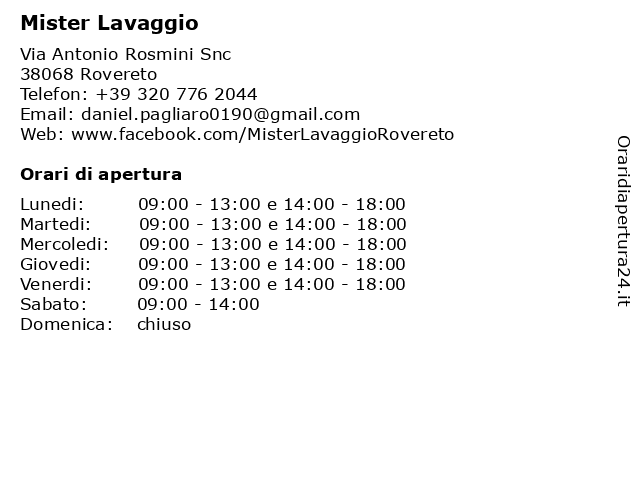 | Lunedi | 09:00-13:00 e 14:00-18:00 |