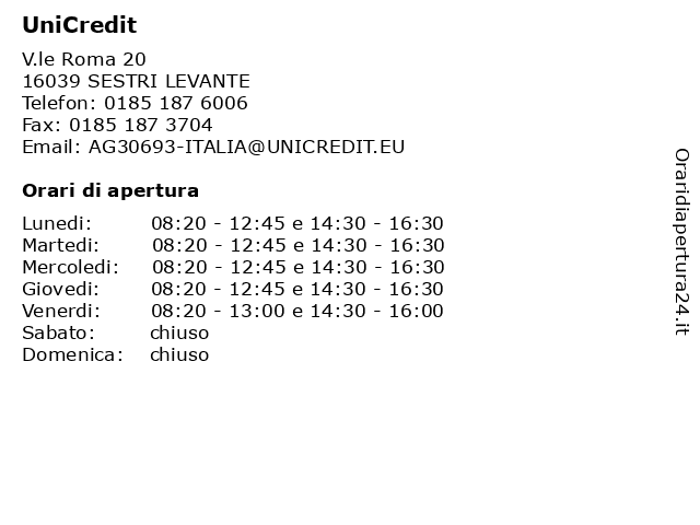 3 Unicredit (Bancomat) (distanza: 7,17 km) Corso Garibaldi 5, 16043 Chiavari (bancomat), agenzie, banche, bancomat, soldi, unicredit 4 Unicredit (Bancomat) (distanza: 14,04 km) Via Aurelia 341, 00058 Santa Marinella (bancomat), agenzie, banche, unicredit 5 Unicredit (Bancomat) (distanza: 15,70 km) Corso Matteotti 33, 16035 Rapallo (bancomat), agenzie, banche, bancomat, soldi, unicredit 6 Unicredit (distanza: 37,65 km) Via Amendola, 12 R, 16145 Genova assicurazione per la casa, assicurazione per la persona, banca, bancomat, carta prepagata, conto, creditexpress dynamic, finanziamenti, genius first, genius smart, investimenti, mutui, prestiti personali, super genius 2.0, unicredit, unicreditcard click, unicreditcard flexia classic |