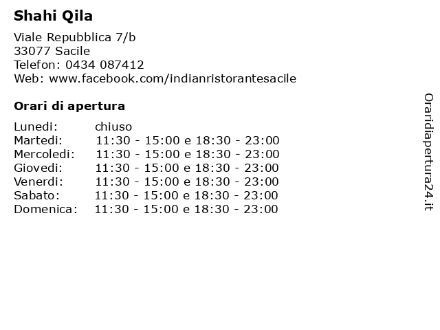 Martedi | 11:30-15:00 e 18:30-23:00 |