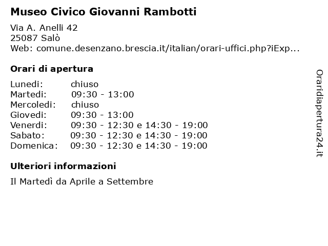 Domenica | 09:30-12:30 e 14:30-19:00 |