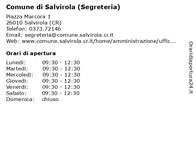 Tag di ricerca per Comune di Salvirola (Segreteria):servizi, (ufficio, comune, (segreteria), segreteria), utente, salvirola |