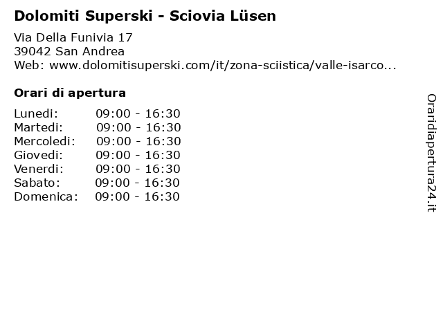 1 Dolomiti Superski - Funivia Meransen (distanza: 0,00 km) Via Della Funivia 17, 39042 San Andrea dolomiti, funivia, impianti, meransen, piste, sci, superski 2 Dolomiti Superski - Sciovia Pobist (distanza: 0,00 km) Via Della Funivia 17, 39042 San Andrea dolomiti, impianti, piste, pobist, sci, sciovia, superski 3 Dolomiti Superski - Sciovia Brunner (distanza: 0,00 km) Via Della Funivia 17, 39042 San Andrea brunner, dolomiti, impianti, piste, sci, sciovia, superski 4 Dolomiti Superski - Sciovia Sergerwiese (distanza: 0,00 km) Via Della Funivia 17, 39042 San Andrea dolomiti, impianti, piste, sci, sciovia, sergerwiese, superski 5 Dolomiti Superski - Seggiovia Breiteben (distanza: 0,00 km) Via Della Funivia 17, 39042 San Andrea breiteben, dolomiti, impianti, piste, sci, seggiovia, superski 6 Dolomiti Superski - Telecabina Nesselbahn (distanza: 0,00 km) Via Della Funivia 17, 39042 San Andrea dolomiti, impianti, nesselbahn, piste, sci, superski, telecabina |