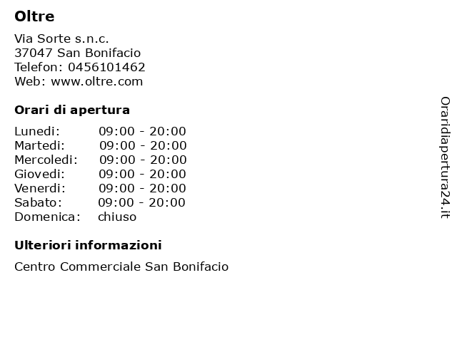 1 Oltre (distanza: 9,57 km) Viale del Commercio 1, 37036 San Martino Buon Albergo (VR) abbigliamento donna, accessori, oltre 2 Oltre (distanza: 14,67 km) Viale del Commercio 1, 37036 San Martino Buonalbergo abbigliamento femminile, accessori, oltre 3 15•16 Birroteca e Oltre (distanza: 14,26 km) Piazza G. Marconi 9, 36071 Arzignano 15punto16, 15•16, aperitivi, artigianale, arzignano, beer, birra, birreria, birroteca, oltre, serata, vicenza 4 Oltre il Giardino di Villa Beretta (distanza: 19,37 km) Via S. Fenzo 1/a, 37141 Mizzole albergo, bed and breakfast, beretta, di, giardino, il, oltre, villa 5 ANOLF Verona Onlus (distanza: 0,56 km) Via Camporosolo 55, 37047 San Bonifacio anolf, associazione nazionale oltre le frontiere, associazioni, onlus, verona 6 Oltre (distanza: 20,59 km) Via Monte Cristallo 5, 37057 San Giovanni Lupatoto abbigliamento neonati, bambini, oltre, ragazzi |