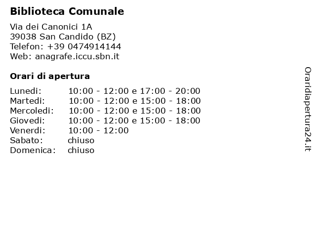 | Martedi | 10:00-12:00 e 15:00-18:00 |