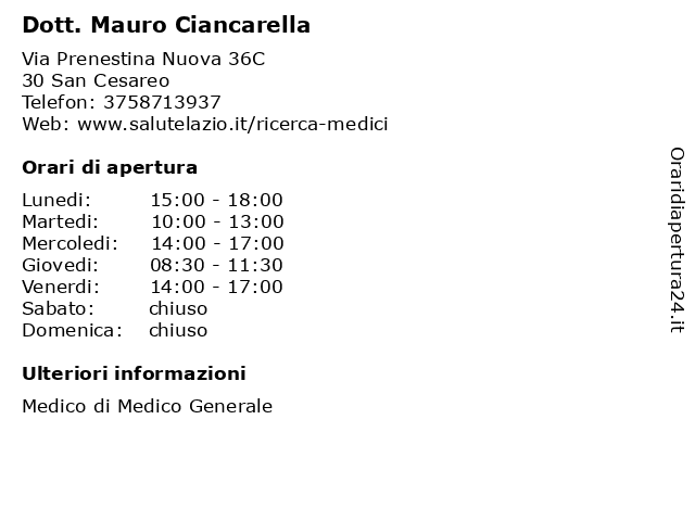 1 Dott. Mauro Ciancarella (distanza: 1,94 km) Via G. Giordani 1, 00030 San Cesareo (RM) ambulatori, analisi, ciancarella, cura della persona, cure, dott., mauro, medici, medicina, sanità, visite mediche 2 Ciancarella & Figli Srl (distanza: 17,35 km) Via Camillo Benso Conte Di Cavour 31, 00041 Albano Laziale abbigl, acces, ciancarella, comm, dett, figli, rag, uomo 3 Dott.ssa Ciancarella Giulia (distanza: 20,04 km) Via F. Tovaglieri 371, 00155 Roma (RM) ambulatorio, ciancarella, cura della persona, dott.ssa, giulia, medicina, medico, prevenzione, salute 4 Dott.ssa Ciancarella Giulia (distanza: 21,65 km) Viale Palmiro Togliatti 950/952, 00172 Roma ambulatorio, ciancarella, cura della persona, dott.ssa, giulia, medicina, medico, prevenzione, salute 5 2c Di Silvia Ciancarella e Antonio Clementi Snc (distanza: 22,78 km) Via Adelmo Niccolai 32, 00155 Roma antonio, catering, ciancarella, clementi, ristoranti, silvia 6 Ciancarella (distanza: 29,50 km) Piazza Enrico Fermi 44, 00146 Roma abbigliamento, abiti, ciancarella, donna, taglie forti, vestiti |