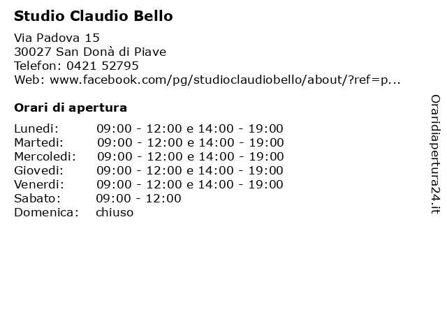 | Venerdi | 09:00-12:00 e 14:00-19:00 |
