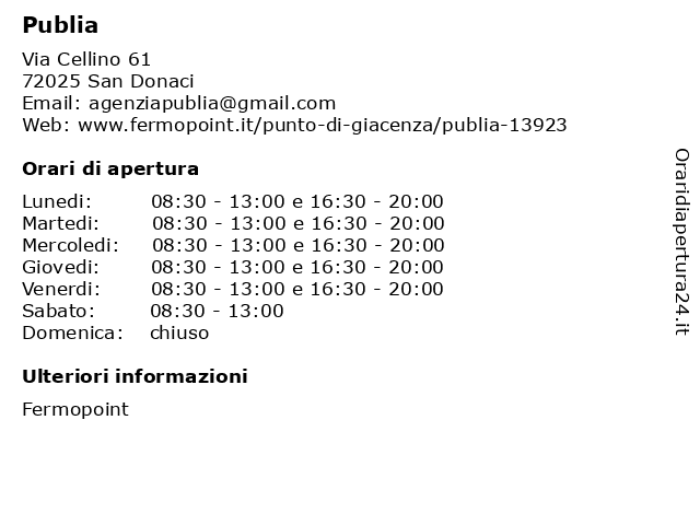 Lunedi | 08:30-13:00 e 16:30-20:00 |