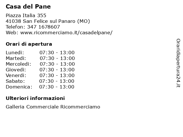 1 Primo Pane (distanza: 1,80 km) Viale Gramsci 82, 41037 Mirandola pane, panetteria, pasticceria tarallificio biscottificio, primo 2 Forno Fior di Pane di Romagnoli Guido (distanza: 7,82 km) Via Mazzini 73, 41038 San Felice sul Panaro azienda, di, fior, forno, guido, impresa, pane, romagnoli 3 Il Profumo del Pane (distanza: 12,83 km) Via Gramsci 12, 41016 Novi di Modena del, il, pane, panetteria, pasticceria, profumo 4 Casa Del Pane Di Fontana Antonella (distanza: 13,96 km) Strada Statale 468 Motta 44/p a, 41012 Carpi alimentari, antonella, casa, comm, dett, fontana, pane, prod, vari 5 Casa del Pane da Antonella & Lorena (distanza: 14,15 km) Via Sott' Argine Motta 44, 41012 Carpi antonella, casa, da, del, lorena, pane, panetteria, pasticceria 6 La Coppia Di Pane Srl (distanza: 15,19 km) Via Ravarino Carpi 136/a, 41030 Bomporto coppia, pane, rivend |