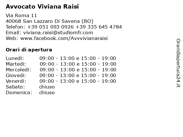 Lunedi | 09:00-13:00 e 15:00-19:00 |