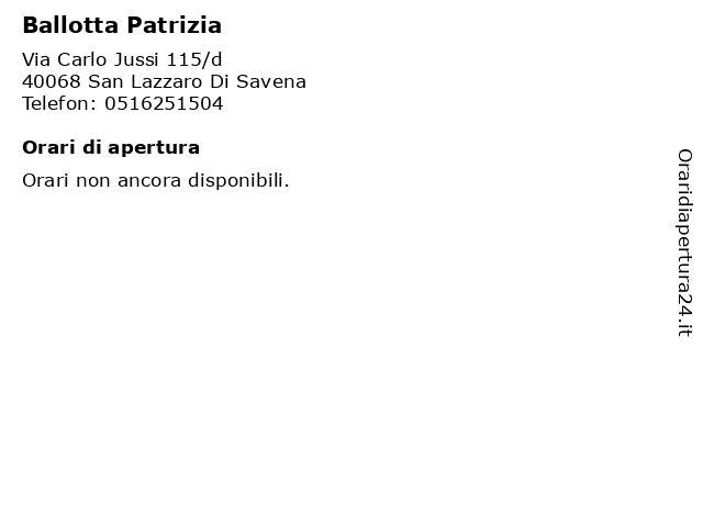 1 Tabaccheria Ballotta (distanza: 0,26 km) Via C. Jussi 115, 40068 San Lazzaro Di Savena ballotta, gratta e vinci, lotto, lottomatica, ricevitorie, scommesse, sigarette, sisal, tabaccheria 2 Dott. Patrizia Riguzzi (distanza: 2,06 km) Via Altura 3, 40139 Bologna (BO) ambulatorio, assistenza, cure mediche, dott., patrizia, riguzzi, sanità, servizi ai cittadini 3 Dott. Patrizia De Benedittis (distanza: 2,06 km) Via Altura 3, 40139 Bologna (BO) ambulatorio, assistenza, benedittis, cure mediche, de, dott., patrizia, sanità, servizi ai cittadini 4 Patty Scarpe di Degli Esposti Patrizia (distanza: 2,09 km) Via C. Jussi 6, 40068 San Lazzaro Di Savena comm, degli, dett, di, esposti, patrizia, patty, roma, scarpe 5 Aldrovandi Snc Di Aldrovandi Marco e Bonora Patrizia (distanza: 2,42 km) Via Emilia 49, 40068 San Lazzaro Di Savena affitto, aldrovandi, bonora, immob, marco, patrizia, proprietà 6 Benestar.It Sas Di Fazzi Manuela e Silvestri Patrizia & c. (distanza: 2,44 km) Via Emilia 26, 40068 San Lazzaro Di Savena benestar, fazzi, it, manuela, pasticcerie, patrizia, silvestri |