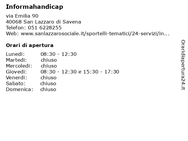 1 Comune di Ferrara (Assistenza Sociale - Servizi Per Le Persone Disabili - Centro H (Informahandicap Ferrara)) (distanza: 42,92 km) Via Ungarelli 43, 44121 Ferrara (assistenza, (informahandicap, assistenza, bilanci, carta etica, centro, circoscrizioni, comune, concorsi, consiglio, di, direttiva generale gestionale, disabili, ferrara, informahandicap, le, per, persone, servizi, sociale 2 Comune di Carpi (Informahandicap: Punto Informativo e di Documentazione) (distanza: 53,81 km) Viale Carducci 34, 41012 Carpi (MO) (informahandicap, (punto, carpi, comunale, comune, di, documentazione, documentazione), informativo, lavoro, punto, servizi, servizio |