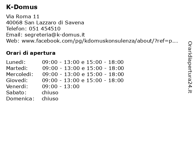 Lunedi | 09:00-13:00 e 15:00-18:00 |