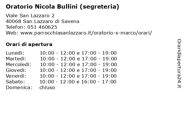 Lunedi | 10:00-12:00 e 17:00-19:00 |