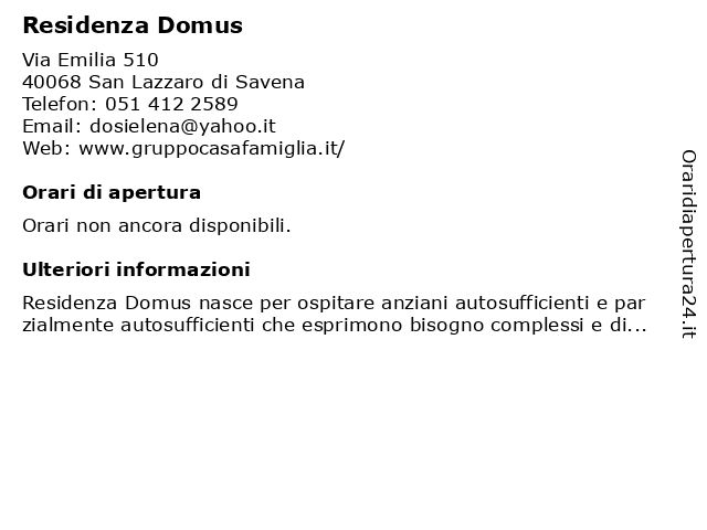 1 Desiderata Domus Di Luigi Benedetti (distanza: 2,73 km) Via Emilia 267, 40068 San Lazzaro Di Savena benedetti, desiderata, domus, gestione, immob, industriali, locaz, luigi 2 Casa Residenza per Anziani Villa Acobaleno orario referrente visita ai degenti (distanza: 4,12 km) Via Reggio Emilia 36, 40068 San Lazzaro BO acobaleno, ai, anziani, casa, degenti, orario, per, referrente, residenza, serizio infermieristico, servizio alberghiero, villa, visita 3 Residenza Anni Azzurri Idice (distanza: 5,42 km) Via Bruno Bottau 9, 40055 Castenaso anni, azzurri, centro per anziani, cura dei malati di alzheimer, geriatra, idice, residenza 4 Domus Luctatorum (distanza: 5,49 km) Via Bruno Tosarelli 356, 40055 Villanova, Emilia-Romagna domus, luctatorum, salute, sport 5 Casa Residenza per Anziani Villa Serena - Ufficio amministrazione (distanza: 6,72 km) Via Toscana 219, 40141 Bologna ambulatorio, amministrazione, anziani, assistenza, casa, cure mediche, per, residenza, sanità, serena, servizi ai cittadini, ufficio, villa 6 Casa Residenza per Anziani Villa Serena - Visita ai degenti (distanza: 6,72 km) Via Toscana 219, 40141 Bologna ai, ambulatorio, anziani, assistenza, casa, cure mediche, degenti, per, residenza, sanità, serena, servizi ai cittadini, villa, visita |