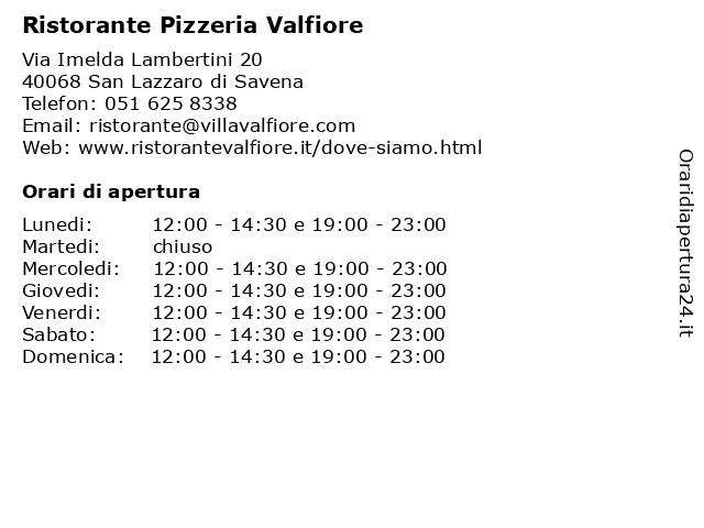 Domenica | 12:00-14:30 e 19:00-23:00 |