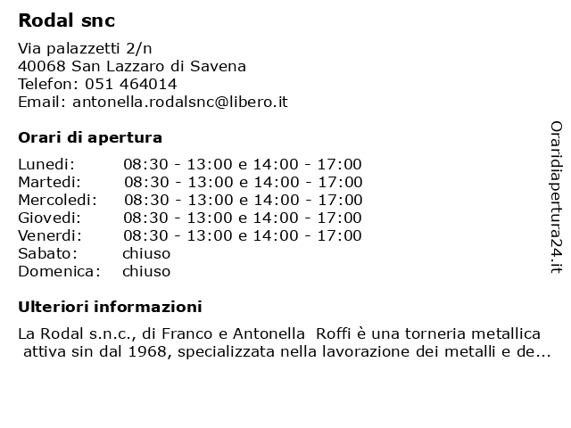 Lunedi | 08:30-13:00 e 14:00-17:00 |