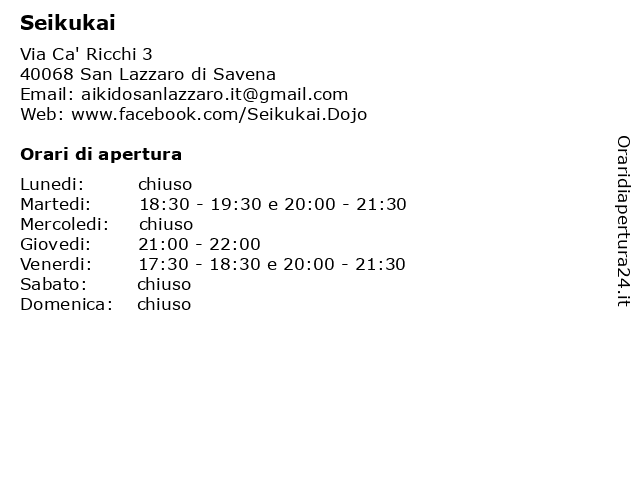 Martedi | 18:30-19:30 e 20:00-21:30 |