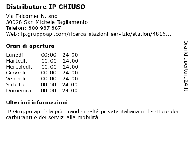 1 Distributore IP CHIUSO (distanza: 0,34 km) Via Conciliazione 124, 30020 S. Michele Tagl.To chiuso, distributore, fornitore di benzina, fornitore di carburante diesel, ip, stazione di servizio per il cambio dell'olio, stazione di servizio per il soccorso stradale 2 Distributore IP (distanza: 2,95 km) Via Lignano , 33053 Latisana distributore, fornitore di benzina, fornitore di carburante diesel, ip, stazione di servizio per il cambio dell'olio, stazione di servizio per il soccorso stradale 3 Distributore IP (distanza: 4,77 km) Via Del Coregolo , 33053 Latisana distributore, fornitore di benzina, fornitore di carburante diesel, ip, stazione di servizio per il cambio dell'olio, stazione di servizio per il soccorso stradale 4 Distributore IP (distanza: 6,77 km) Via Sottopovolo N. snc, 33053 Latisana distributore, fornitore di benzina, fornitore di carburante diesel, ip, stazione di servizio per il cambio dell'olio, stazione di servizio per il soccorso stradale 5 Distributore IP (distanza: 8,40 km) Via Crosere N. 20, 33053 Latisana distributore, fornitore di benzina, fornitore di carburante diesel, ip, stazione di servizio per il cambio dell'olio, stazione di servizio per il soccorso stradale 6 Distributore IP (distanza: 8,67 km) Ss 14 Km 71+776 N. snc, 30025 Fossalta Di Portogruaro distributore, fornitore di benzina, fornitore di carburante diesel, ip, stazione di servizio per il cambio dell'olio, stazione di servizio per il soccorso stradale |