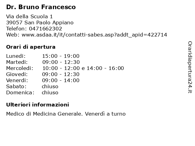 | Mercoledi | 10:00-12:00 e 14:00-16:00 |