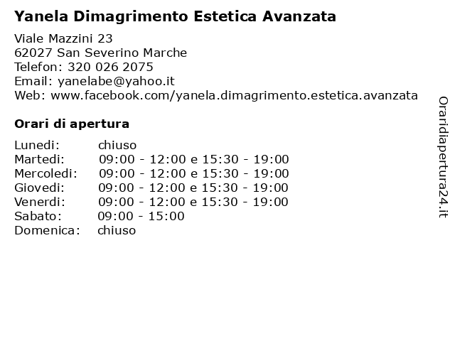 | Martedi | 09:00-12:00 e 15:30-19:00 |