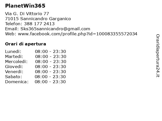 5 Planetwin365 (distanza: 42,69 km) Via Marchese De Rosa 54-56, 71121 Foggia planetwin365, sala giochi, sala slot, scommesse sportive, virtual games, vlt 6 |