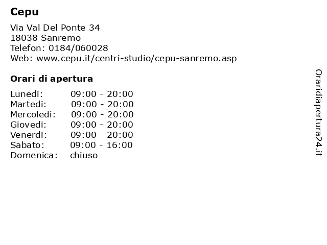| Lunedi | 09:00-20:00 |